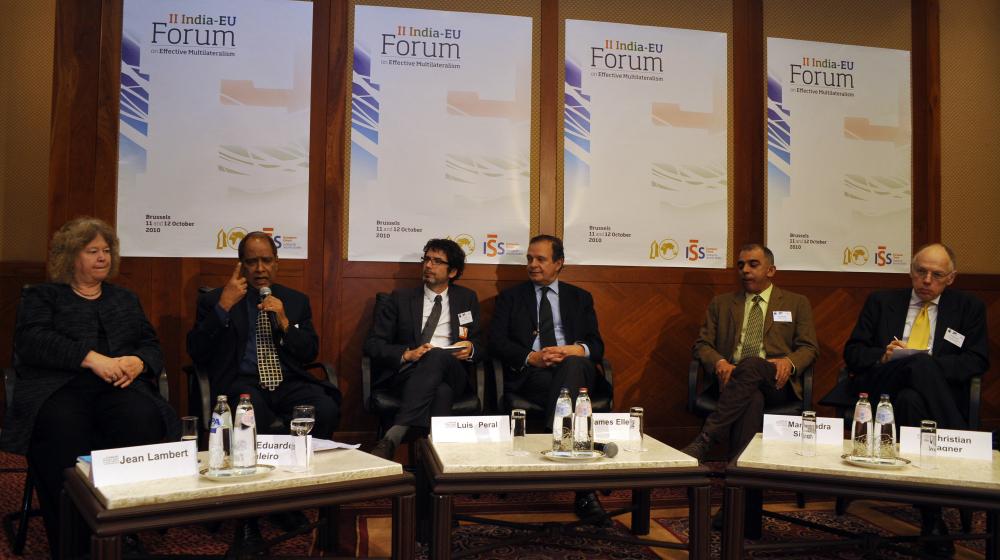 The present volume is a direct outcome of a four-year process of close cooperation and friendship between the Indian Council of World Affairs (ICWA), a think tank of the Indian Ministry of External Affairs, and the European Union Institute for Security Studies (EUISS), the sister institution at the EU level. In 2008, both institutions jointly launched the annual India-EU Forum on Effective Multilateralism, which has since then been organised alternately in Delhi and Brussels. This initiative has involved the active participation of some 200 ministers, ambassadors, high-level officials and parliamentarians as well as academics and experts from both sub-continents. The successive fora have facilitated an informal exchange of views on strategic issues in what might be described as a second-track diplomacy setting, and it is hoped that these discussions will pave the way towards policymakers reaching agreement at the highest level and in particular at the annual EU-India Summit.