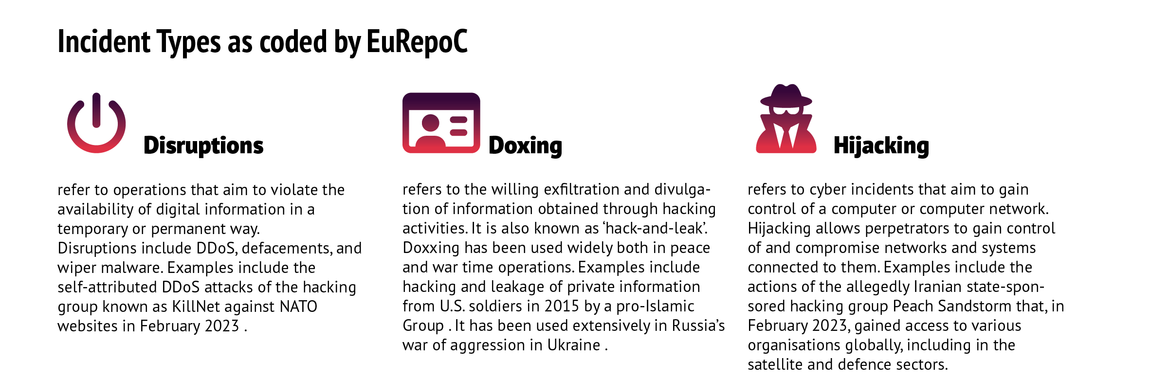 4. We define a cyberattack as the ‘use of computational technology in cyberspace for disruptive or destructive purposes’. See: European Repository of Cyber Incidents (EuRepoC) (https://eurepoc.eu/).